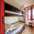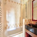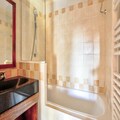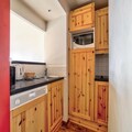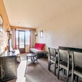 This 40 m² apartment, located on the 2nd floor, offers a ski-in/ski-out experience with a living room, open kitchen, two bedrooms (one with bunk beds and one with a double bed), a bathroom with a bathtub shower, and a separate toilet. A balcony provides beautiful mountain views. Pets are allowed for an extra charge, and bed linens are provided with an optional daily change.