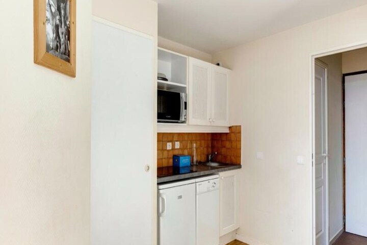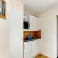 This well-positioned apartment offers a prime ski-in/ski-out experience, making it an ideal choice for those looking to enjoy the slopes right from their doorstep. The 40m² unit, located on the 5th floor, features a south-facing balcony with a stunning mountain view. The living area includes a convertible sofa that sleeps 3, a dining table with seating for 7, and ample space to relax. The apartment comprises a single bedroom with a double bed and a cabin corner for additional storage or sleeping. Guests can also enjoy the convenience of a private indoor water closet and a well-maintained bathroom. The property is well-suited for families or small groups, with the added benefit of being in close proximity to shops and restaurants.