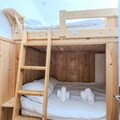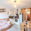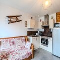 This bright 2-star studio cabin, located on the 3rd floor, offers a comfortable and convenient stay for 2-4 people. With a surface area of 30m², the studio is ideally situated just a 5-minute walk from the village center and the slopes, with a shuttle stop nearby for easy access to the ski areas. The apartment is south-east facing, providing plenty of natural light and scenic views. The fully equipped kitchen includes a fridge, oven, ceramic hob, microwave, dishwasher, coffee makers, and extractor hood. The living room features a sofa and access to a balcony. A mountain corner with bunk beds (130x190 cm) offers additional sleeping space.