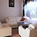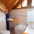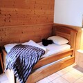 The first floor features an open-plan, fully equipped kitchen with a dishwasher, microwave, and raclette machine, along with a cozy dining area and living room, both leading to a balcony. The second level hosts two comfortable bedrooms: one with a double bed and the other with four single beds, complete with an en-suite shower room. A shared jacuzzi and ski storage area enhance your stay, while a covered terrace and outdoor parking are available. Guests will enjoy Wi-Fi, a wood stove, and essential amenities, including beds made on arrival and end-of-stay cleaning. Pets are welcome with a supplement.