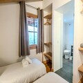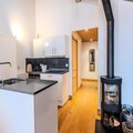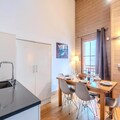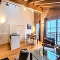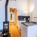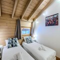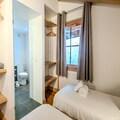 The apartment features a well-equipped kitchen with modern appliances, including a fridge, induction hob, oven, microwave, dishwasher, toaster, coffee maker, and raclette and fondue sets for après-ski meals. The open-plan kitchen flows into the dining area and living room, which includes a cozy wood stove and access to the balcony. There are two bedrooms: one with three single beds and an en-suite shower room and toilet, and the other with two single beds. A separate bathroom and an independent toilet are also provided, along with a laundry area that includes a washing machine and dryer.Guests can enjoy covered parking, a ski locker, and several included services, such as linens, cleaning products, and beds made on arrival. Pets are not allowed, and the apartment is non-smoking. A €500 deposit is required.