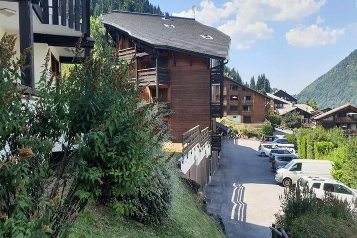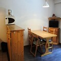 This 2-room apartment is located on the 2nd floor of the LA CORNICHE Residence in Morzine, just 500 meters from the village center and ski slopes, with a shuttle stop nearby. The apartment, which can accommodate up to 4 people, offers a comfortable 35m² living space plus a balcony. Inside, you'll find a fully equipped open kitchen with a mini oven, kettle, microwave, coffee maker, and toaster. The dining area and living room offer access to the balcony, while the mountain corner includes two bunk beds, and the bedroom has a double bed. The apartment also includes a bathroom and a separate toilet.