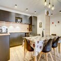 The apartment features a fully equipped kitchen with modern appliances, including a stove, oven, fridge, and dishwasher, allowing guests to prepare meals during their stay. A dining area complements the kitchen, while the living room offers ample space to relax after a day of exploring or skiing. Additional amenities include a ski locker with a boot dryer and a private garage with an electric car connection, ideal for those traveling by car. The property also provides convenient access to nearby slopes and a range of outdoor activities, ensuring a fulfilling stay for all guests.