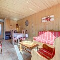 This 57m², 3-room apartment is located on the second floor of a residence in the heart of the resort, just 200m from the ski lifts and close to local shops, providing a peaceful retreat with a beautiful view of the Pleney slopes. The apartment includes a welcoming entry, a bedroom with two single beds, and a second bedroom with two single beds pushed together. The spacious living room features an open kitchen, a dining area, and a lounge with a convertible sofa bed for two people, offering access to a south-east facing balcony where you can enjoy the stunning views.