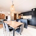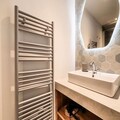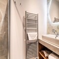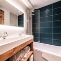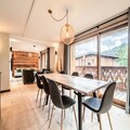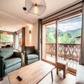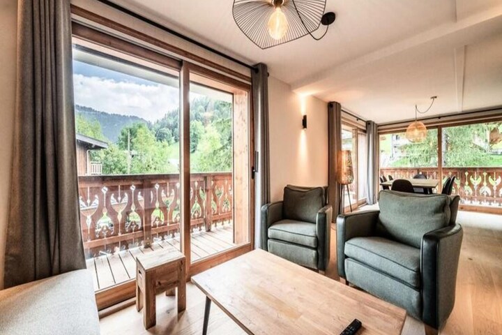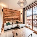 This is a spacious and modern 93m² apartment located just 1.5km from the center of Morzine, offering easy access to both the Avoriaz and Morzine-Les Gets ski areas. Situated on the first floor of a newly built residence with high-end finishes, this apartment comfortably accommodates up to 8 guests. The open-plan living area includes a fully equipped kitchen, dining space, and lounge area with a television, all leading out to a balcony. The apartment features three bedrooms, each with ample storage and en-suite or adjacent bathrooms. Bedroom 1 offers a double bed, an office area, and a shower room. Bedroom 2 also has a double bed and en-suite shower, with balcony access. The family room (bedroom 3) includes a double bed and bunk beds, perfect for children or a small group, with access to an independent bathroom.