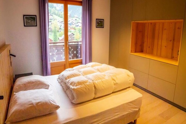 Bedroom 1 offers a double bed with storage and balcony access, while Bedroom 2 has bunk beds and additional storage. A bathroom with both a shower and bathtub, along with a separate WC, adds convenience. Additional amenities include a ski locker, wifi, and a covered parking space. Sheets and towels are provided, and end-of-stay cleaning is included. Guests also benefit from being a Summer Multipass Partner, giving them access to a variety of activities during the warmer months. Pets are not allowed.