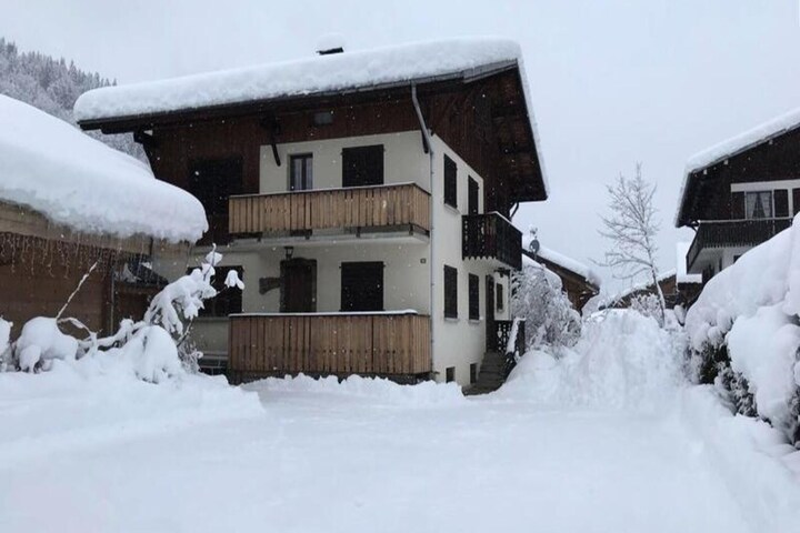 This spacious and comfortable apartment is ideally located just a stone's throw from the center of the resort, on the second floor of a quiet chalet with three apartments. Situated in a residential street, it is less than 200 meters from shops and key points of interest. The apartment offers a cozy living space, including a dining room/lounge with an open kitchen, a sleeping area featuring a double bed and two single beds, and access to a sunny balcony with a stunning view of the Pleney slopes. Additionally, there is a bedroom with a single bed and a bathroom with a toilet.