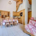This 2-bedroom, 3-star apartment is located in the center of the resort, right on the Pleney slopes, offering easy access to skiing and local amenities. It accommodates up to 6 people with a living room (including a sofa bed), an open kitchen, a bedroom with a double bed, and another with 2 bunk beds. The apartment includes WiFi, a dishwasher, washing machine, oven, microwave, television, and a large balcony. A private garage is also available for guests. Pets and bicycles are not allowed.