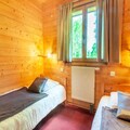 Situated on the ground floor of a private chalet, the apartment offers a spacious living and dining area with access to a balcony, perfect for enjoying the views. The open kitchen is fully equipped with a dishwasher, oven, and microwave, allowing guests to easily prepare meals during their stay. The apartment features a double bedroom, a bedroom with two single beds, and another double bedroom, accommodating up to 6 people. A bathroom and a separate toilet complete the interior layout. Outdoor parking is available for added convenience, and the apartment also includes Wifi, TV, and a washing machine for a comfortable stay.