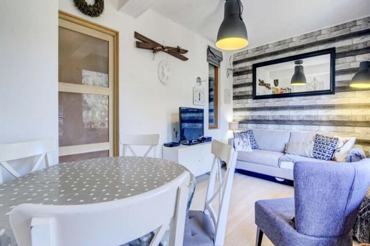 The apartment includes a double bedroom and a cabin with bunk beds, making it ideal for families or small groups. The bathroom features a toilet and a washing machine. For added convenience, the apartment also offers a ski locker, parking, Wi-Fi, and a TV.Guests will enjoy access to the Summer Multipass, providing discounts on various activities in the area. The property is well-equipped with provided sheets and towels, and end-of-stay cleaning is included.