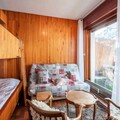 Property along with a functional and recently renovated design offers a spacious 30m² studio, accommodating up to 4 people. The studio features a living area with two 80x190 bunk beds and a 160cm sofa bed, making it suitable for small families or groups. Guests can enjoy a panoramic view from the balcony, a perfect spot to unwind after a day on the slopes. Additional amenities include a ski locker for storage, a shower room with a washing machine, and a fully equipped kitchen with essential appliances such as a fridge, oven, and microwave. The rental also provides a sheet and towel kit, with end-of-stay cleaning included. Wi-Fi is available for an extra fee, with rental options through the agency.