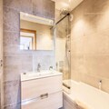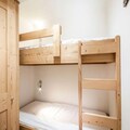 This stunning apartment, located in one of the best spots in Morzine, offers direct access to the Pleney slopes and is just steps away from restaurants, bars, and shops. The high-end construction blends contemporary design with traditional mountain charm, creating a welcoming and stylish space. Situated on the second floor with elevator access, the apartment features a spacious entrance, a cozy living room with a sofa bed, and an open kitchen that leads to a balcony. There are two well-appointed bedrooms, each with either two single beds or a double bed and a television. A separate sleeping area with two bunk beds provides additional space. The apartment also includes a bathroom with a toilet, a shower room, and another separate toilet.