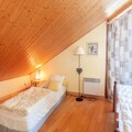The first floor includes a bedroom with a double bed, balcony, and ensuite bathroom with a WC. Upstairs, there are two additional bedrooms, one with a double bed and a single bed, plus a balcony, and another with two single beds. The third bedroom offers a double bed and a single bed, with an adjoining bathroom and WC. The apartment also boasts a shower room with WC and is equipped with a closed garage, ski locker, cellar, WiFi, and an elevator for added comfort.