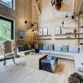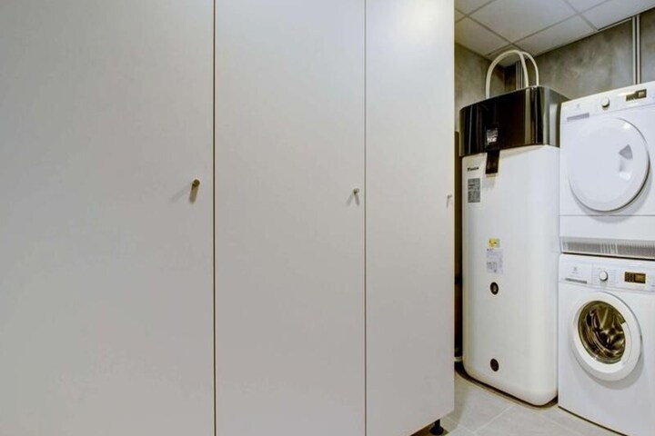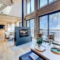 The chalet is equipped with an open, fully fitted kitchen, including a bar area for casual dining. The kitchen is designed for easy socializing, with the dining room seamlessly connected to both the living area and kitchen. The property includes a ski room for storing equipment, a laundry room with a washing machine and dryer, and top-tier amenities throughout. The design integrates both luxury and comfort, ensuring a memorable stay for all guests. Additionally, the property offers mid-stay cleaning and end-of-stay cleaning, ensuring guests enjoy a hassle-free experience.