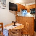 Property along with a cozy and practical layout, this renovated studio-cabin offers a comfortable stay for up to 4 guests. Located on the 1st floor of a residence, the apartment includes a mountain corner with two bunk beds, a living room with a sofa bed, and a kitchenette for preparing simple meals. The living area also has a television and provides access to a balcony, offering a pleasant space to relax. The apartment is well-equipped with essential amenities, including storage space in the entrance, a bathroom with a bathtub, and a separate WC. For added convenience, a ski locker and a small cellar for storing up to 2 bikes are available. The residence also provides parking spaces, though they are not individually allocated. Pets are not allowed, and bicycles cannot be stored inside the apartment.