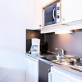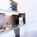 Inside the apartment, you’ll find a functional kitchen area equipped with essential appliances for a comfortable stay. The space is compact yet practical, offering a cozy atmosphere for your mountain getaway. The residence provides maintenance kits to ensure your stay runs smoothly, and the location is ideal for easy access to shops, restaurants, and entertainment within the resort.