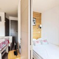 This charming 2-room apartment, located in a ski-in/ski-out building, offers comfortable accommodations for up to 4 guests. The apartment includes a bedroom with a cozy bed, a spacious living room, and a bathroom with a separate toilet. Pets are allowed, though additional fees may apply, and the property is ideal for families with its available baby kit (subject to availability). Bed linen is included, with options for a daily linen change at an additional cost.