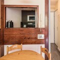The apartment features a fully equipped kitchen, perfect for preparing meals after a day on the slopes. It includes a stove, fridge, microwave, and necessary cooking utensils. The bathroom has a bath-shower, and the separate toilet ensures privacy. For your convenience, the property offers additional services like parking (which can be reserved in advance) and a television for entertainment.