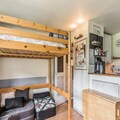 This cozy apartment, located on the 6th floor of a ski-in/ski-out residence, offers the perfect retreat for small families or groups of up to four guests. The living room is furnished with a sofa bed that sleeps two, while the mezzanine features two beds (not suitable for two adults). The property is pet-friendly, allowing you to bring along your furry companions. Bed linen is included, and guests can opt for additional towel services or a daily linen change for added comfort.