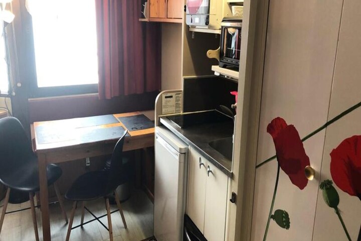 The studio features a fully equipped open kitchen with all essentials for meal preparation. The bathroom includes a bathtub and toilet for your convenience. Additional amenities include bed linens, available daily cleaning services at an extra cost, and an optional parking reservation near the resort. Mandatory end-of-stay cleaning and tourist taxes apply, ensuring a hassle-free and memorable holiday.