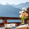 "Bella Vista Apt. No. 10", 4-room apartment 130 m2 on 1st floor. Spacious and bright, modern and luxurious furnishings: large living/dining room with open-hearth fireplace, dining table, cable TV, hi-fi system and DVD. 1 room with 1 double bed (1 x 150 cm, length 200 cm). 2 rooms, each room with 2 beds (90 cm, length 200 cm). Large, open kitchen (oven, dishwasher, 4 ceramic glass hob hotplates, toaster, kettle, electric coffee machine, Capsules for coffee machine (Nespresso) extra, fondue Set (chinoise, cheese)). Shower/WC, bath/shower/WC. Large balcony. Balcony furniture. Marvellous panoramic view of the mountains. Facilities: iron, hair dryer, logs (extra). Internet (WiFi, free). Please note: non-smokers only.