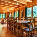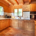 The chalet boasts a fully equipped open kitchen, perfect for preparing meals after a day of adventure. A large living and dining area features a cozy fireplace, and the balcony and terrace are ideal for outdoor relaxation, with garden furniture and a barbecue. On-site amenities include a laundry room with a washing machine and dryer, as well as a private kitchenette in one of the bedrooms. The property also includes ample storage space, a ski room, and separate WC facilities.