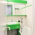 This charming apartment offers a cozy retreat for up to four guests, featuring a living room with a sofa bed, a private bedroom with a double bed, and a modern bathroom with a bathtub and WC. The property is pet-friendly for an additional fee, and includes bed linens, a flat-screen TV, and access to Wi-Fi. A table with four chairs in the dining area creates the perfect space to enjoy meals together.
