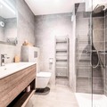 Spanning a generous 126m², this high-end apartment comfortably accommodates up to eight guests. The open-plan living and dining area, complete with a fully equipped kitchen, is perfect for gathering after a day on the slopes. Each of the four bedrooms is thoughtfully designed for comfort, with two offering balcony access and en-suite bathrooms for added privacy. A cozy sleeping alcove with a bunk bed is ideal for younger guests, while the ski locker with a boot dryer ensures your gear is ready for the next day's adventures. Modern amenities, including Wi-Fi and a private parking space with a garage, make your stay as convenient as it is luxurious.
