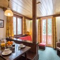 This cozy chalet accommodates up to 8 guests with a spacious living room featuring a double sofa bed, as well as two sets of 2x2 bunk beds and a convertible sofa for two. It is perfect for families or groups looking to enjoy a mountain getaway. Pets are welcome with prior approval, and the chalet is family-friendly, offering a baby kit upon request. Bed linen and bathroom towels are provided for your convenience.
