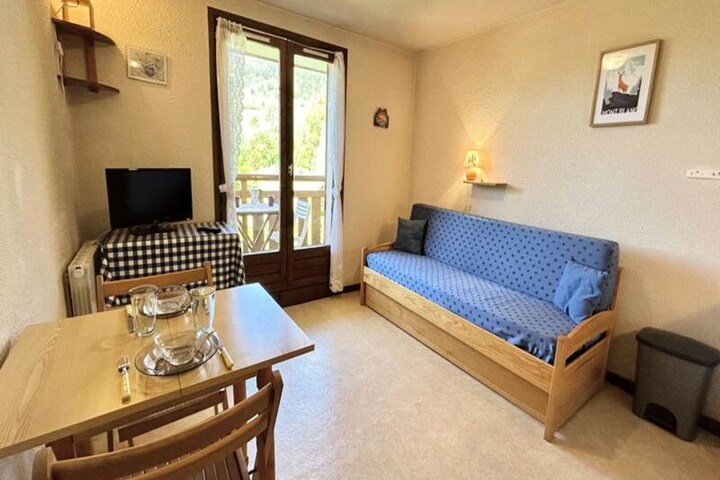The apartment is thoughtfully designed for comfort and practicality. It features an entrance hall, a cozy living room with a single sofa bed and a pull-out bed (70 x 190 cm), and a west-facing balcony where you can soak in the breathtaking mountain views. The kitchenette is equipped for preparing meals, while the separate bathroom and toilet ensure convenience. Modern touches like a television enhance your stay, and the property includes a ski locker for your winter gear and access to shared outdoor parking. Additional services, such as bed linen, towels, Wi-Fi, and baby kits, may be available upon request for added ease.