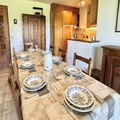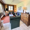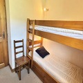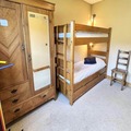 The apartment is thoughtfully designed to accommodate up to nine guests, making it ideal for families or groups of friends. It features three comfortable bedrooms, including two with double beds and one with bunk beds and a pull-out bed, as well as an additional cozy cabin with bunk beds. The living and dining area is warm and inviting, complete with a decorative fireplace and a fully equipped kitchen that opens onto the terrace and garden. Modern amenities such as a separate bathroom, a shower room with WC, and a ski locker ensure a comfortable and convenient stay. The 19 m² terrace and 77 m² garden provide a delightful outdoor space to unwind after a day on the slopes.
