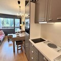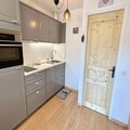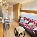 Located on the second floor, the apartment is thoughtfully designed to accommodate up to four guests. The entrance hall features two cozy bunk beds (note: the upper bunk is not suitable for children under six), while the main living area includes a comfortable double sofa bed. A fully equipped kitchen opens onto the living room, creating a welcoming space to prepare meals and unwind after a day of exploration. Step out onto the southwest-facing balcony to enjoy stunning sunsets and crisp mountain air. Modern amenities like a television, ski locker, and a dedicated underground parking space (number 16) ensure a seamless and comfortable stay.