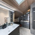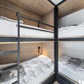 The apartment is equipped with a well-appointed kitchen, a sauna with a shower and bathtub, and a washing machine. It includes two attic bedrooms, a mountain corner with bunk beds, and a mezzanine with a TV/reading area. The layout offers comfort and privacy, making it perfect for families or groups.