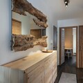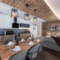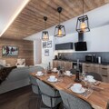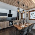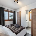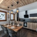 Inside the apartment, the fully equipped kitchen opens into the dining area, allowing guests to enjoy meals together while taking in the breathtaking views. The apartment features one double bedroom with an en-suite shower room, a second double bedroom, and a third bedroom with a bunk bed, offering flexibility for families or groups. Additional amenities include an independent bathroom, a separate toilet, and a ski locker for convenience.