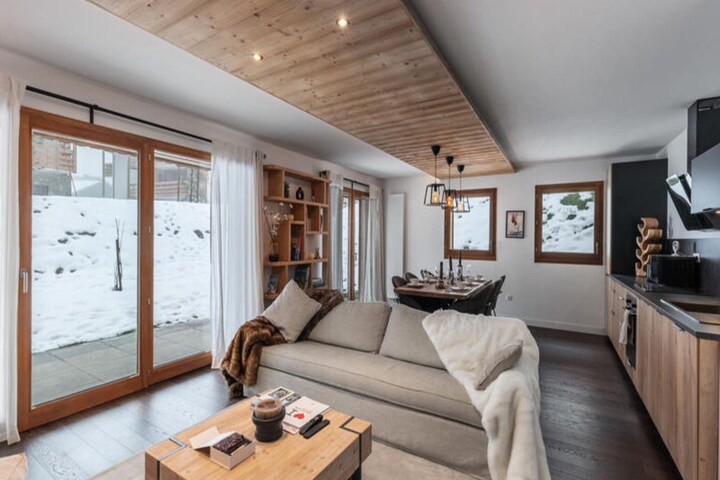 Nestled on a sunny hillside in Megève, facing the Rochebrune massif, this spacious and tastefully decorated apartment offers a serene escape in the heart of the Alps. Designed to accommodate up to 7 people, the apartment features 3 bedrooms, a living room with an open kitchen, and a dining area, all furnished in a modern and refined style. The property also includes two parking spaces in a closed box, providing added convenience for guests.