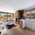 This spacious 100-square-meter apartment, located just minutes from the center of Megève, comfortably accommodates up to 4 adults and 2 children. It features a bright living room with access to a large balcony, perfect for enjoying the sun. The apartment offers two double bedrooms, each with a double bed, wardrobe, and one with an en-suite bathroom. A children's bedroom with a bunk bed, a second bathroom with a shower, and separate toilets provide added convenience. The apartment includes 2 garage spaces, a ski locker, and is non-smoking with no pets allowed.
