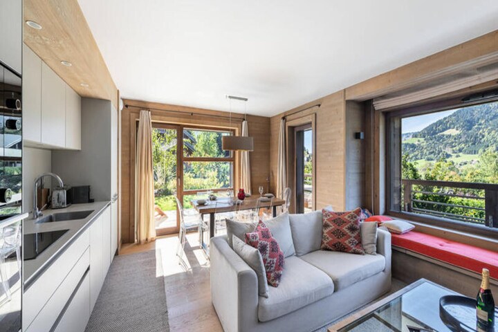 Located in the tranquil Rochebrune district of Megève, the residence is just a 10-minute drive from the city center, offering easy access to the resort's attractions. The free MegBus shuttle stop is conveniently located 150 meters away, providing transportation to nearby destinations. The residence is close to outdoor activities, such as hiking and petanque, and also offers access to the area's vibrant summer and winter amenities. For winter sports enthusiasts, the nearby ski lifts offer direct access to the slopes. Guests can explore the natural beauty of the Alps, with panoramic views from the property enhancing the overall experience.