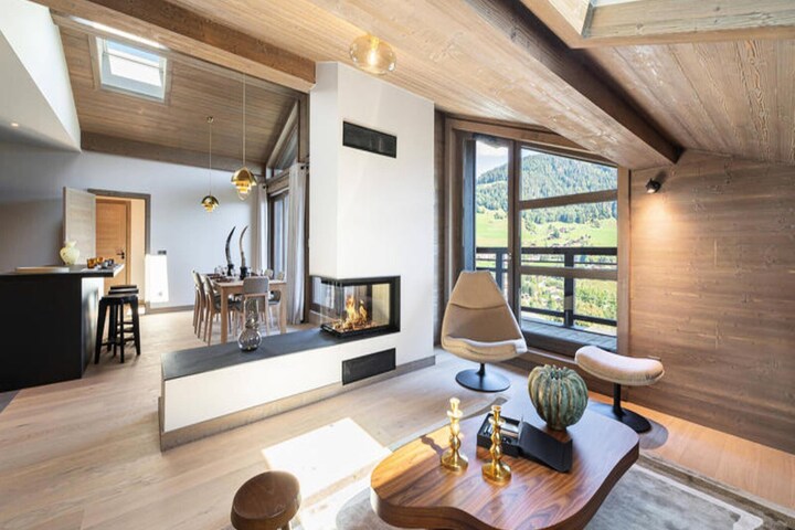 Property, along with its charming ambiance, offers a spacious duplex layout designed for utmost comfort. It features three well-appointed double bedrooms, each with an en-suite bathroom, comfortably accommodating up to six guests. The residence is non-smoking and not pet-friendly. A highlight of the property is its private balcony with panoramic views of the surrounding peaks. The open-plan living area includes a lounge with a central fireplace, a dining area, and an open kitchen, while guests can enjoy access to a range of on-site amenities such as a swimming pool, gym, sauna, and hammam. The residence also offers free access to the MegBus shuttle service, which stops just 150 meters away, and includes essential services like regular cleaning, welcome gifts, and linens.