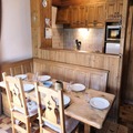 Inside the apartment, you’ll find a fully equipped kitchenette with an electric hob, oven, refrigerator, and dishwasher, allowing for convenient meal preparation. The bathroom includes a bathtub and sink, with a separate toilet for added privacy. Additional amenities include shared parking, a garage, and a ski locker. Optional services such as Wi-Fi, household linen rental, and end-of-stay cleaning can be arranged upon request.