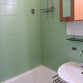 - Bathroom with bathtub, sink, and heated towel rail.