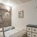 Designed to accommodate 4 adults and 2 children, the 48 m² apartment features a thoughtfully arranged layout across three levels. The main floor boasts an open-plan kitchen, dining, and living area with a television, a separate toilet, and a balcony where you can savor the crisp mountain air. The first mezzanine includes a double bedroom, two single beds, a bunk bed, and a bathroom with a shower and toilet. The second mezzanine provides an additional single bed, ensuring ample space for everyone. Practical amenities such as Wi-Fi, a ski locker, and a garage for a small car enhance your stay.