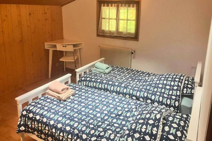 Set amidst the serene beauty of Saint-Gervais, this charming chalet apartment offers a peaceful retreat with breathtaking views of Mont Joly, the Aravis mountain range, and the picturesque village below. Perfect for families or small groups, this cozy haven is located just 2.5 km from the ski slopes and 1.5 km from the village center, making it an ideal base for exploring the region’s alpine wonders. A shuttle stop is conveniently located 1 km away, ensuring easy access to all the local attractions. In winter, snow equipment is essential for reaching this tranquil spot nestled in the upper part of the village. \n\nThe apartment spans 70 m² and is thoughtfully designed to accommodate up to four guests. Situated on the second floor, it features a west-facing balcony where you can unwind and soak in the stunning mountain vistas. The living room is warm and inviting, complete with a wood-burning stove, a comfortable sofa, a television, and a dining area that opens onto the balcony. The fully equipped kitchen is a delight for culinary enthusiasts, offering modern appliances such as an induction hob, oven, microwave, refrigerator, dishwasher, and even a raclette grill and fondue set for authentic alpine dining experiences. \n\nThe sleeping arrangements include a double bedroom and a twin bedroom, both furnished with cozy bedding to ensure restful nights. The bathroom is equipped with a shower and sink, while a separate WC adds convenience. Additional amenities include an outdoor parking space, ski and boot storage, and complimentary firewood for the stove. Bed linen and towels are provided, ensuring a hassle-free stay. Optional services such as Wi-Fi and baby equipment rentals are available upon request. \n\nWhether you’re here to ski, hike, or simply relax, this apartment offers the perfect blend of comfort and location. With its panoramic views and proximity to Saint-Gervais’ charming village center, it’s a delightful choice for your next alpine getaway.