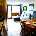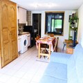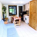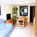 This 35m² apartment, located on the ground floor, offers a comfortable space for up to 5 people. The apartment features a cozy living room with a sofa and television, a dining area for 5, and a kitchen equipped with an electric hob, refrigerator, microwave, mini oven, and washing machine. The bedroom contains double bunk beds, while the additional sleeping area has a convertible sofa and extra beds. A bathroom with a shower, vanity unit, and WC is also included. Pets are welcome, and the apartment has a private outdoor parking space. A north-facing terrace completes the accommodation.