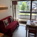 This 29m² ground-floor studio apartment in Les Contamines-Montjoie comfortably accommodates up to five guests. It features a sofa bed (140x190cm) in the living room, bunk beds in the sleeping area, and a pull-out bed (90x190cm). Pets are allowed. The studio benefits from an east-facing balcony.