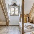 The apartment is thoughtfully designed for your comfort, featuring a fully equipped open kitchen ideal for preparing meals. Modern bathrooms, one with a shower and the other with a bathtub, provide convenience for larger groups. Additional amenities include Wi-Fi, a private garage, and a ski locker for secure storage. Premium services such as linen, beds made on arrival, bathroom products, and regular cleaning are included, ensuring a hassle-free and memorable stay.
