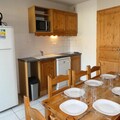 The apartment features a fully equipped kitchen with a dishwasher, ceramic hob, microwave, refrigerator, coffee maker, toaster, and kettle. A garage and ski locker are available for added convenience. Optional services like Wi-Fi rental, household linen, and childcare equipment are available for an additional fee.