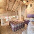 The chalet’s kitchen is fully equipped with modern appliances, including a central island, pantry, and ample counter space, ideal for preparing meals for a large group. The open-plan layout connects the kitchen to the dining and living areas, providing a comfortable space for socializing. The property also includes a ski room, a technical room, and ample storage space. With its high-end facilities, the chalet is an exceptional choice for both winter and summer stays, ensuring a luxurious and comfortable experience year-round. End of stay cleaning and linen are included in the rental.