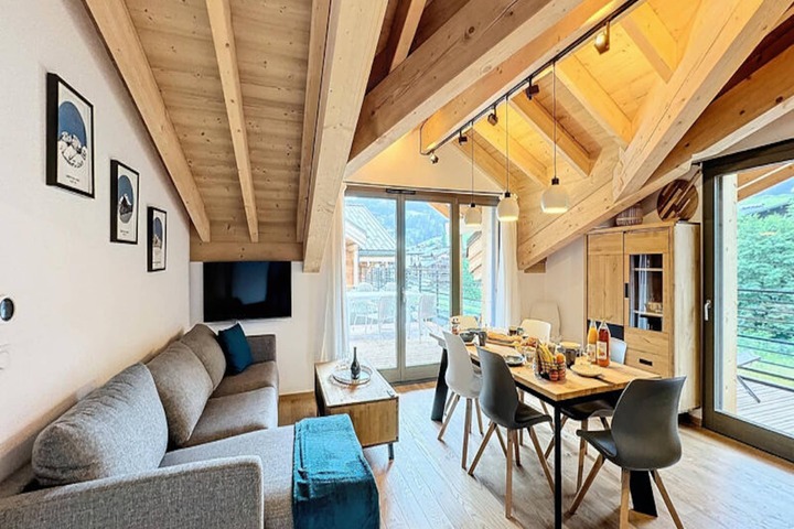 In the heart of the picturesque village of Les Gets, this elegant apartment invites you to experience the charm of the French Alps in style. With its modern decor and thoughtful design, this 64 m² retreat is perfect for families seeking both comfort and convenience. Surrounded by the stunning landscapes of Haute-Savoie, it offers a serene escape just moments from the vibrant town center and ski slopes. Whether you're visiting in winter or summer, this apartment promises an unforgettable mountain getaway. \n\nThe apartment comfortably accommodates up to eight guests across two bedrooms and a cozy living area. The master bedroom features a luxurious 160x200 cm bed, with space for a crib if needed, while the second bedroom includes a 140x200 cm sofa bed and a mezzanine with two single beds, ideal for older children. The living room provides additional sleeping space with a high-quality double sofa bed. The fully equipped kitchen, complete with a raclette grill, Nespresso machine, and dishwasher, makes it easy to prepare hearty meals after a day of adventure. Modern amenities such as televisions in the living room and bedrooms, as well as a washer and dryer, ensure a comfortable stay for all. \n\nStep outside to your private garden terrace, a secure and peaceful space perfect for families with children. The apartment also includes a private parking space, ski locker, and cellar, offering ample storage for ski equipment or up to six bicycles. Located just 600 meters from the ski slopes and the lively market square, you'll have easy access to shops, restaurants, and activities. For golf enthusiasts, the Les Gets Golf Course is only 4 km away, adding another layer of enjoyment to your stay. \n\nWhether you're carving down snowy slopes, hiking through alpine trails, or simply relaxing in the fresh mountain air, this apartment is your gateway to the best of Les Gets. Discover the magic of Haute-Savoie and create lasting memories in this idyllic alpine retreat.