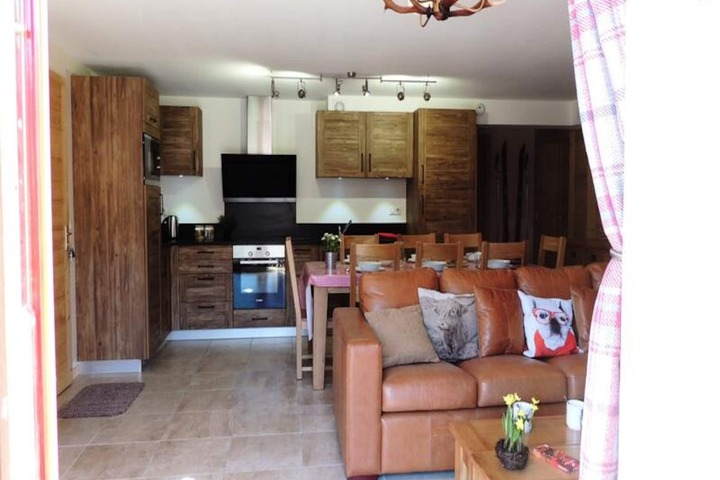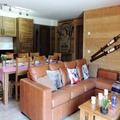 Step inside this beautifully designed 91.30 m² apartment, meticulously furnished to blend alpine charm with modern comforts. The spacious living room, equipped with a TV and Sonos speaker, opens onto a dining area and a terrace through large bay windows, inviting you to soak in the crisp mountain air. The fully equipped kitchen, complete with a dishwasher, oven, and capsule coffee machine, ensures effortless meal preparation. Accommodating up to 8 guests, the chalet features three cozy bedrooms, including a bunk room for four, a double room with convertible twin beds, and a master bedroom with a double bed. Two bathrooms, one with a bathtub and the other with a shower, provide added convenience, while amenities like a washer-dryer and electric shoe dryer enhance your stay.