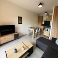 Step inside and discover a thoughtfully designed space that comfortably accommodates up to four guests. The apartment features a cozy living and dining area that opens onto the balcony, a fully equipped kitchen with modern appliances, and a warm, inviting bedroom with a double bed and ample storage. The sleeping alcove with bunk beds is perfect for families or small groups. The sleek bathroom with a walk-in shower and heated towel rail ensures a touch of luxury after a day of exploring the mountains. Additional conveniences include electric shutters, a washing machine, and a ski locker with a boot dryer, ensuring every detail is taken care of for your comfort.